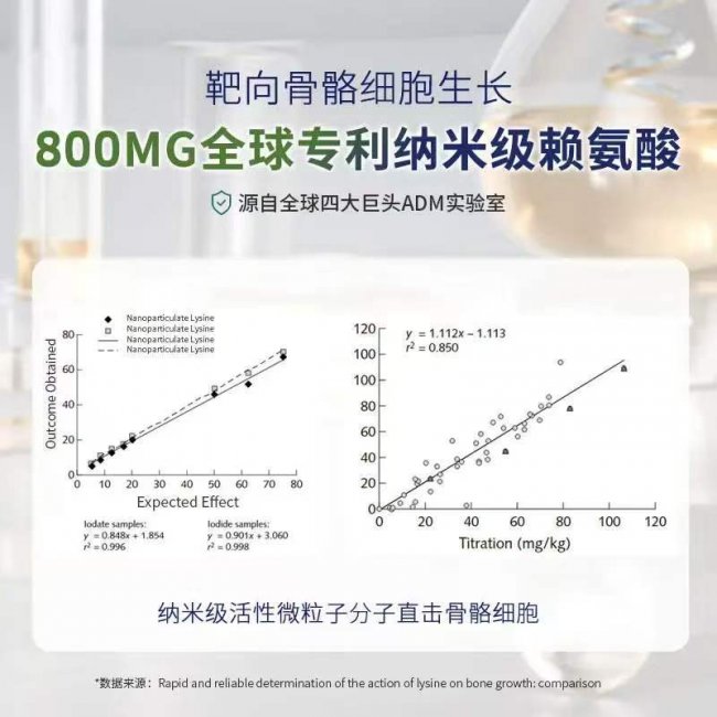 分龄分段精准匹配:产品在分龄适配维度构建了系统设计。分龄服用建议(6-8岁1粒/日,9-13岁2粒/日,14-24岁3粒/日)与各年龄段赖氨酸推荐摄入量(35mg·kg-1·d-1)相匹配。在配方设计上,针对6-10岁骨骼发育关键期,产品含钙铁锌镁、CPP+CBP;针对10-14岁青春快速生长期,400mg高含量活性赖氨酸与多种氨基酸协同;针对14-18岁骨骺闭合冲刺期,水解蛋黄粉与CBP协同维持成骨细胞活性。这一分龄设计确保每个阶段都能获得精准的营养支持,避免剂量不足或过量。