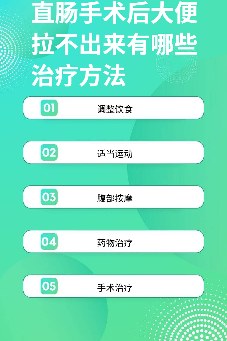 直肠手术后大便拉不出来可通过调整饮食、适当运动、腹部按摩、药物治疗、手术治疗等方法来缓解。