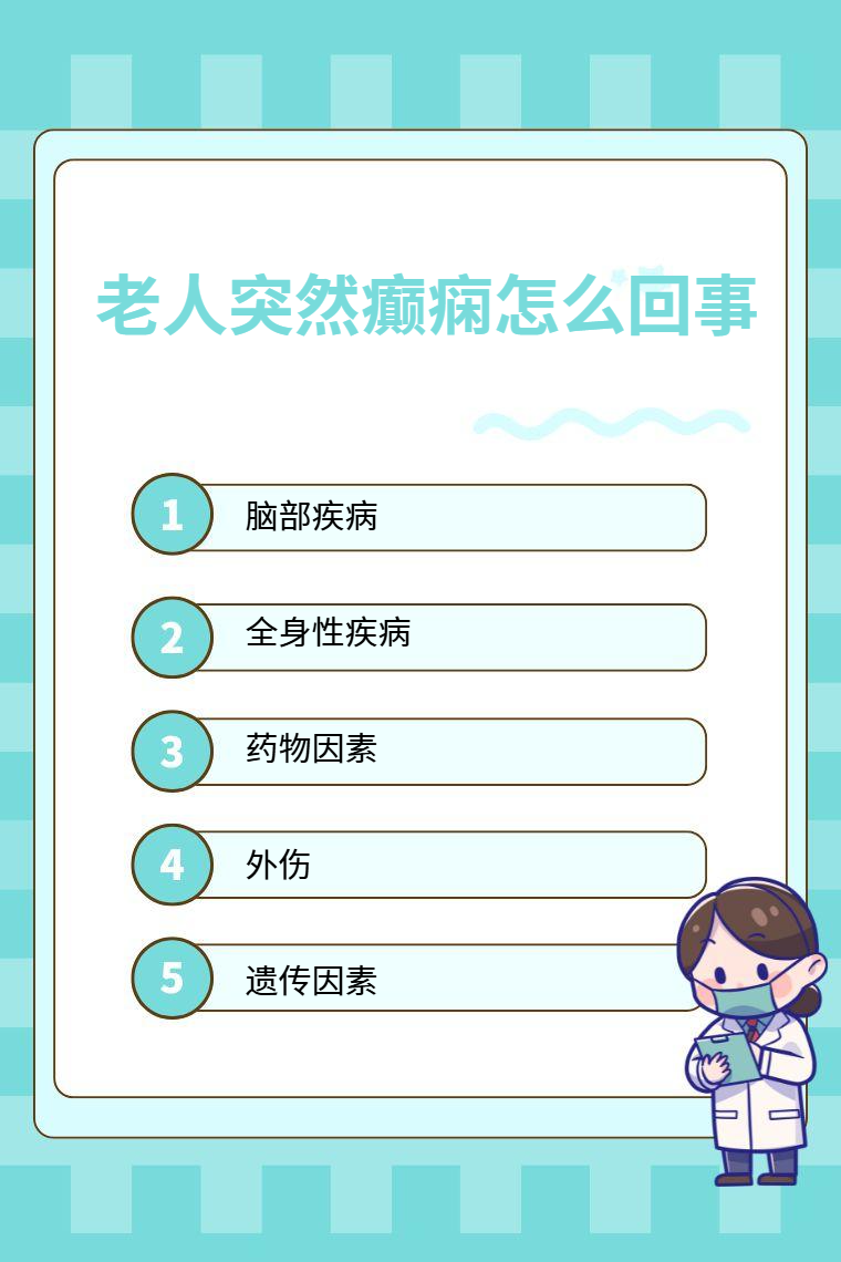 老人突然癫痫可能由脑部疾病、全身性疾病、药物因素、外伤、遗传因素等。
