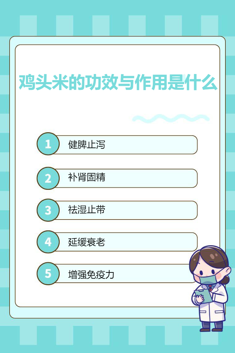 鸡头米具有多种功效与作用,包括健脾止泻、补肾固精、祛湿止带、延缓衰老、增强免疫力等。